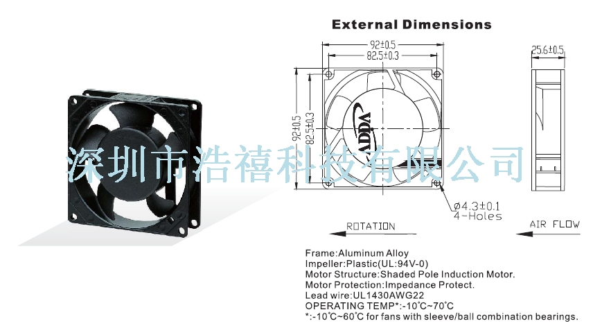 | Fan = AC- FAN | Size = 92x92x25 | Speed = | Flow = | Noise = |