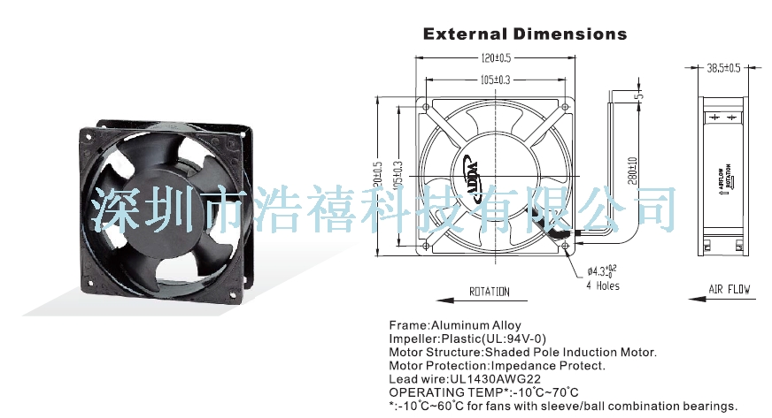 | 120x120x38(at-a1cf) | AA1281HB-AT(A1CF) | ◎※● | 115/60 | 0.22 | 3100 | 103.50 | 0.350 | 47.0 | |