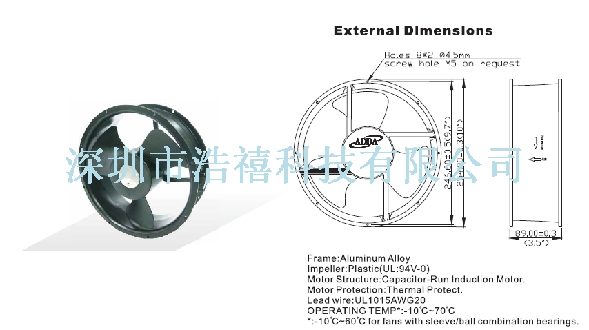 | Fan = AC- FAN | Size = 254x89 | Speed = | Flow = | Noise = |