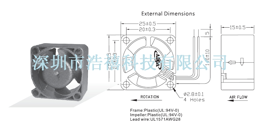 | 25x25x15 | AD0205HB-D51(T) | ◎ | 5 | 0.070 | 8000 | 1.600 | 0.100 | 17.0 | |