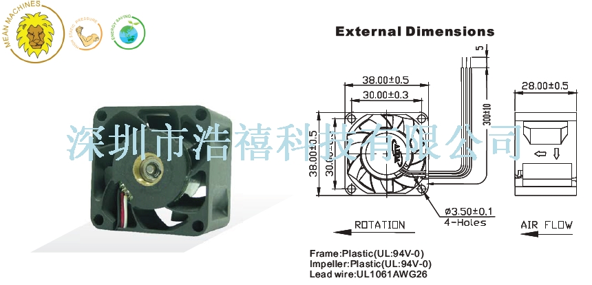 | Fan = DC-Fan | Size = 38x38x28 | Speed = | Flow = | Noise = |