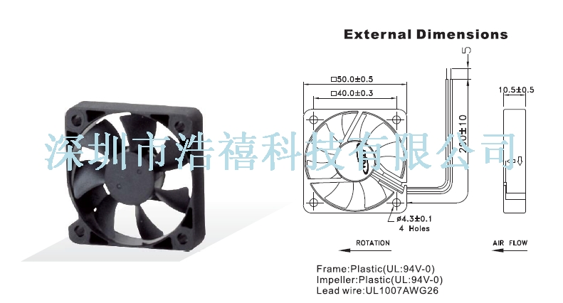 | Fan = DC-Fan | Size = 50x50x10 | Speed = | Flow = | Noise = |