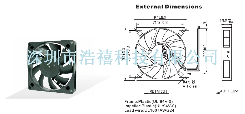 | Fan = DC-Fan | Size = 80x80x15 | Speed = | Flow = | Noise = |
