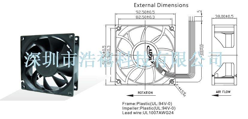 | 92x92x38(ds) | AD0924XB-F9BDS(M) | ◎ | 24 | 0.65 | 5400 | 135.00 | 0.740 | 58.5 | |