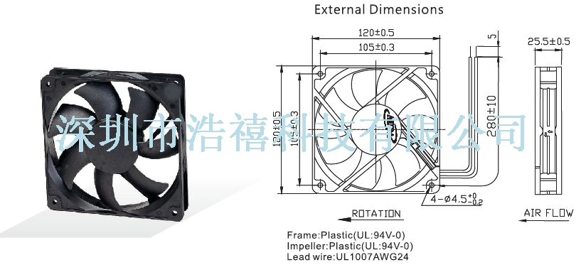| 120x120x25 | AD12012MB257BZ0 | ◎ | 12 | 0.14 | 2050 | 81.054 | 0.113 | 38.0 | |