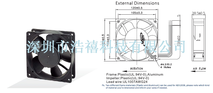 | 120x120x38(ad-f) | AD1212HB-F9BGP(FM) | ◎ | 12 | 1.62 | 4300 | 199.73 | 0.625 | 61 | |