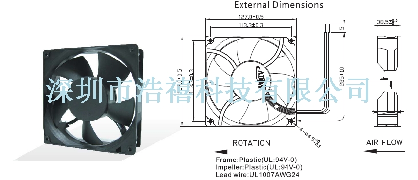 | 127x127x38 | AD1324LB-F5B | ◎ | 24 | 0.15 | 2000 | 107.490 | 0.162 | 41.0 | |