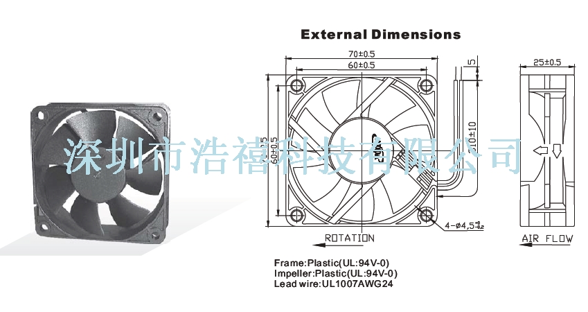 | Fan = WATERPROOF-Fan | Size = 70x70x25 | Speed = | Flow = | Noise = |