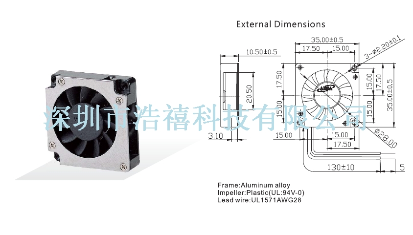 | 35x35x10 | AB3505HB-GA0 | ◎● | 5 | 0.145 | 7000 | 1.45 | 0.216 | 35.0 | |