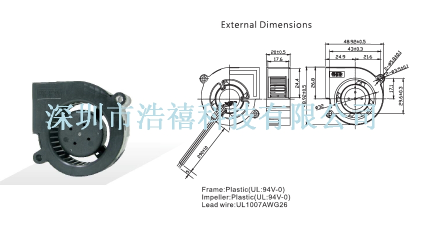 | Fan = BLOWER | Size = 50x50x20 | Speed = | Flow = | Noise = |